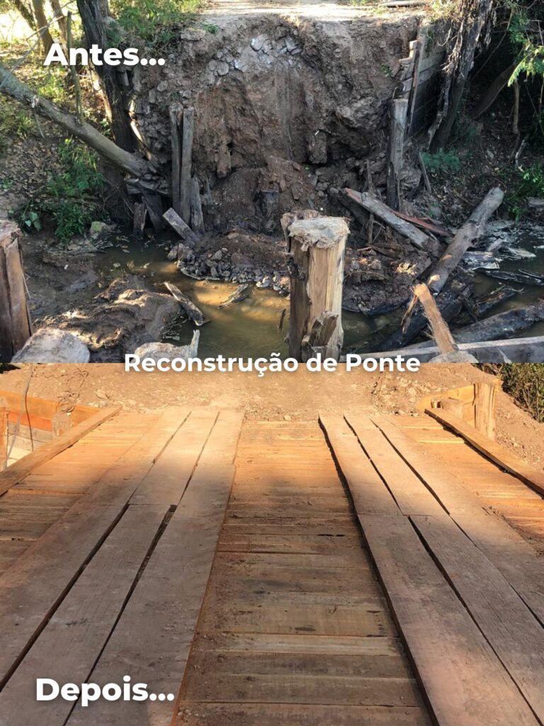 Entre as principais intervenções já realizadas estão: reforma e construção de pontes, abertura de novas estradas e trechos, limpeza de minas d’água, manutenção das placas vicinais, instalação de drenos em pontos críticos e reforço de estruturas em áreas com maior fluxo de veículos.