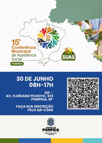 A Secretaria Municipal de Desenvolvimento Social e Econômico e o Conselho Municipal da Assistência Social de Pompeia, realizam, no dia 30 de junho a 15ª Conferência Municipal da Assistência Social. Ação é um espaço democrático e participativo para discutir o presente e o futuro das políticas públicas no setor.
