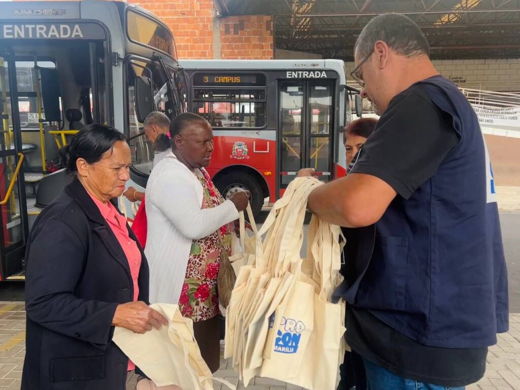 Local de grande circulação, o Terminal Urbano, localizado no Centro da cidade, foi escolhido para a ação de orientação nesse primeiro dia de vigor da lei. Ao mesmo tempo, o Procon Marília também distribuiu sacolas retornáveis para as pessoas, reforçando a necessidade de conscientização da população sobre esse novo comportamento. Ao longo das últimas semanas, a Prefeitura de Marília tem intensificado campanha educativa na mídia local com o objetivo de alcançar o maior número possível de moradores, evitando a surpresa na hora das compras.