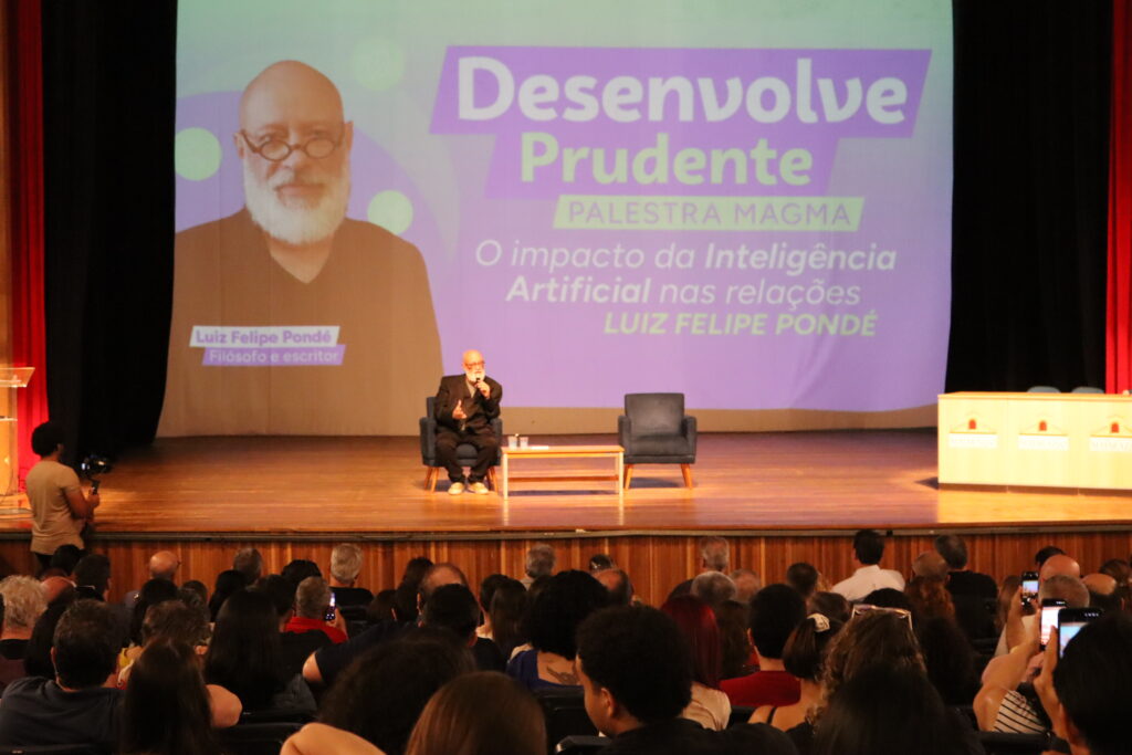 O teatro Paulo Roberto Lisboa, no Centro Cultural Matarazzo, foi palco de uma noite especial na última quarta-feira (12/11), marcando o encerramento da primeira fase do Programa Desenvolve Prudente. A iniciativa, fruto da parceria entre a Prefeitura de Presidente Prudente e o Sebrae-SP, celebrou os resultados alcançados em 2025 com uma palestra do filósofo e professor Luiz Felipe Pondé, que abordou “O impacto da inteligência artificial nas relações”.